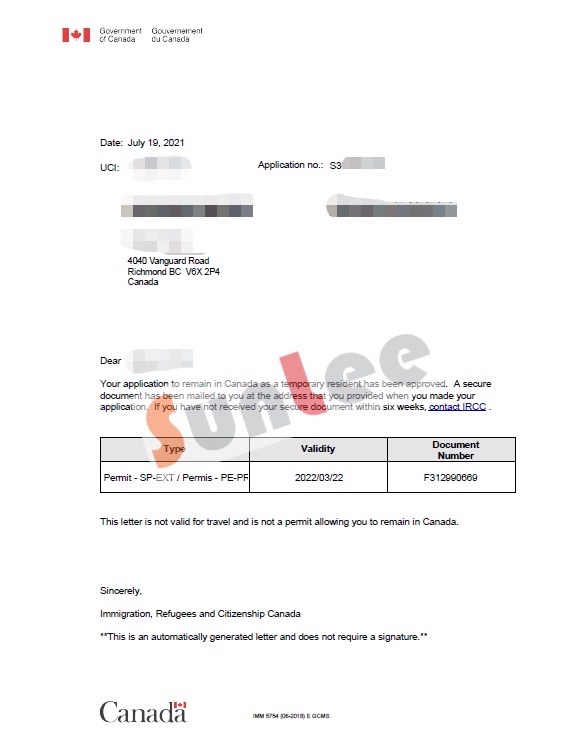 2021年12月2号,加拿大团聚客户,申请人子女收到移民局贴签通知,从递交申请到获批刚好用7个月。