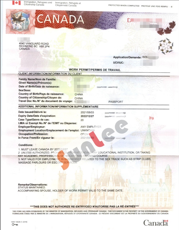 C女士于2019年6月底登陆温哥华并开始工作。同时,配偶W先生和孩子通过旅游签证登陆加拿大,在边境配偶获得开放工签,孩子获得陪同签证。取得工作许可后,配偶W先生很快找到工作,同时孩子申请免费入读BC省排名靠前的公立小学,全家获得免费医疗福利。