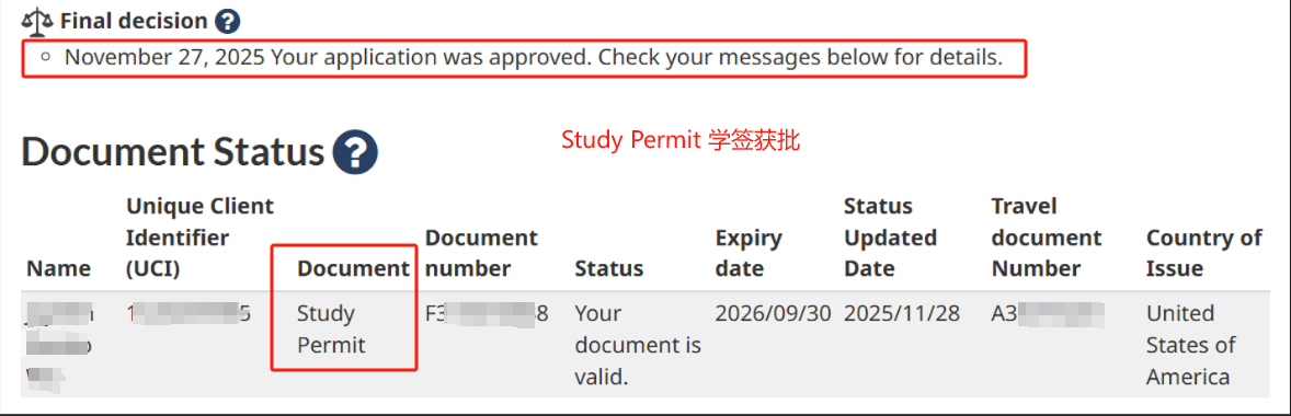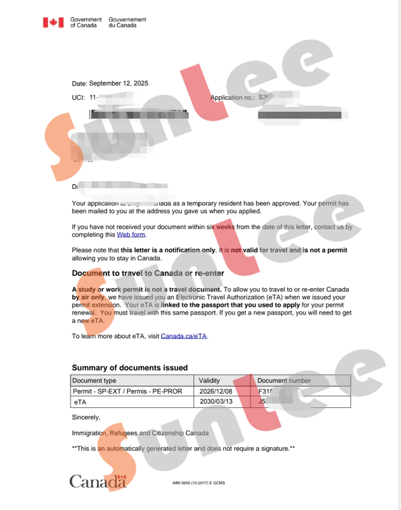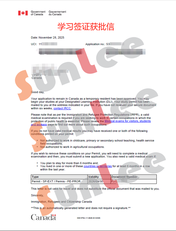 这一类集中展示学签获批、学签延期及相关学习身份文件,方便参考不同留学申请阶段的成功记录。