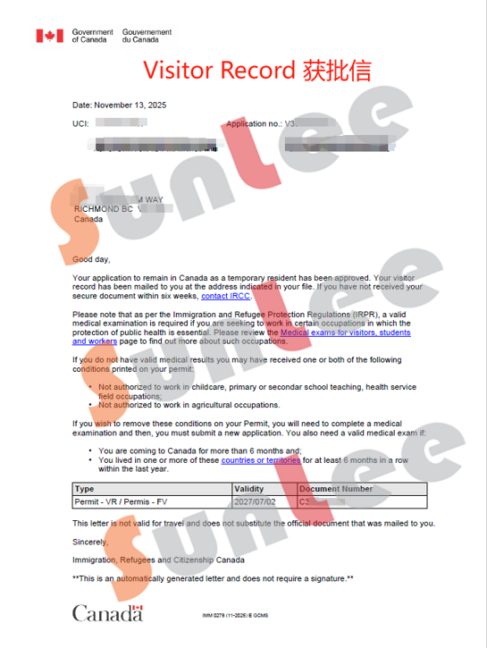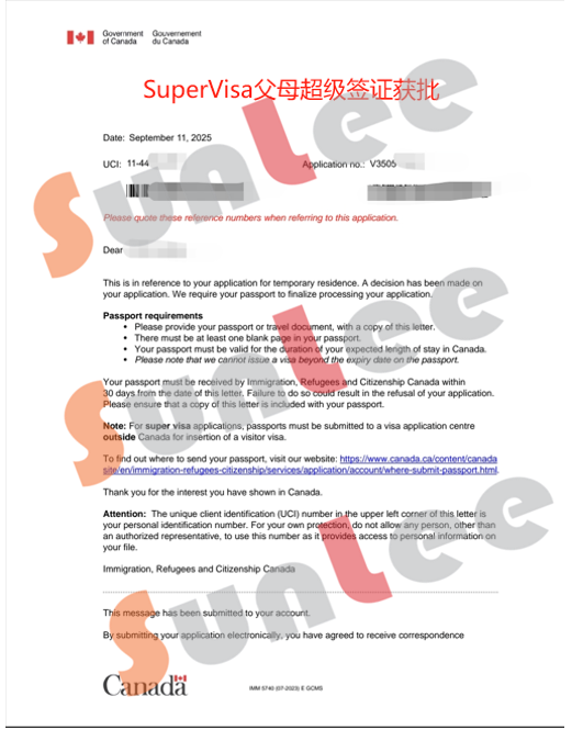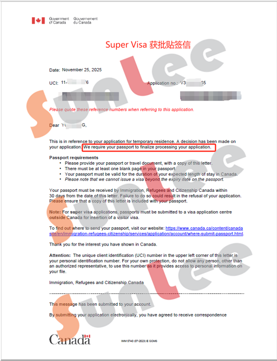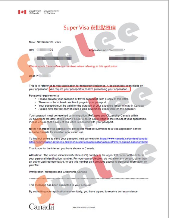 这一类展示访客签证、超级签证、护照贴签信及相关审批结果,适合参考短期入境与探亲访问路径。